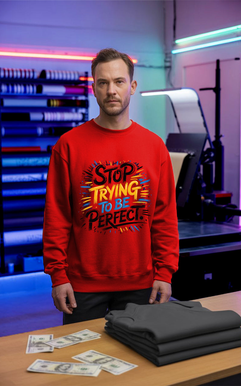 Customized Stop Trying Sweat shirt  is made from soft, breathable cotton for all-day comfort. Add your own design, logo, or slogan to create a unique style. Suitable for casual wear, corporate branding, and promotions.