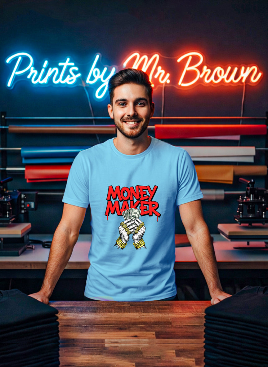 Customized Money Maker T Shirt is made from soft, breathable cotton for all-day comfort. Add your own design, logo, or slogan to create a unique style. Suitable for casual wear, corporate branding, and promotions.